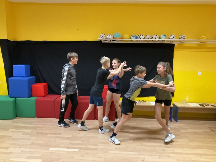 Dílna je určena pro žáky 6. ročníku. Připravena je řada dramatických her na rozvoj komunikace, pohybu, fantazie, spolupráce se svými vrstevníky.