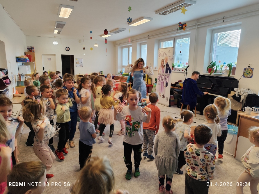 Naši školku navštívil pan Dominik Fajkus se svou manželkou a společně nám představili hudební program s názvem „Za oponou“.