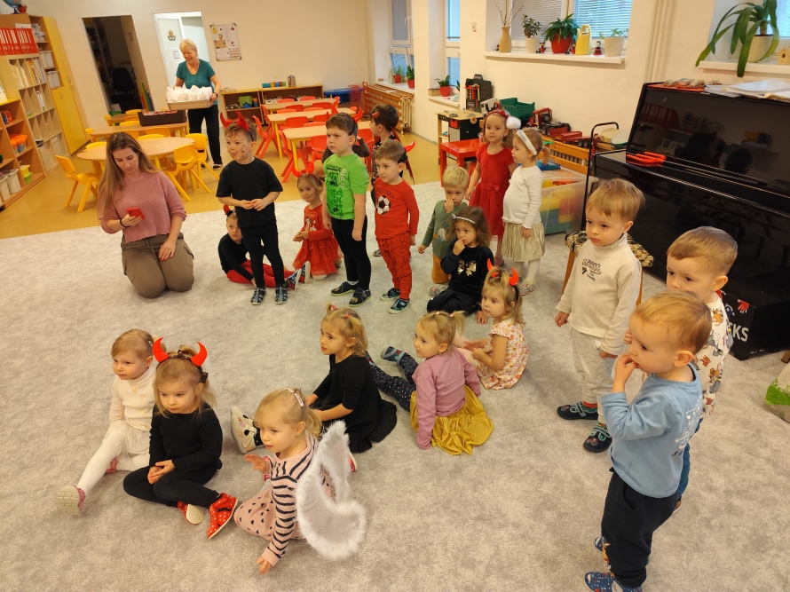 2. 2. navštívila celá MŠ ZUŠ, kde nám děti zahrály na různé hudební nástroje a společně si také zazpívaly.