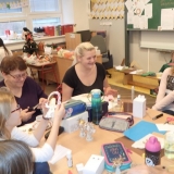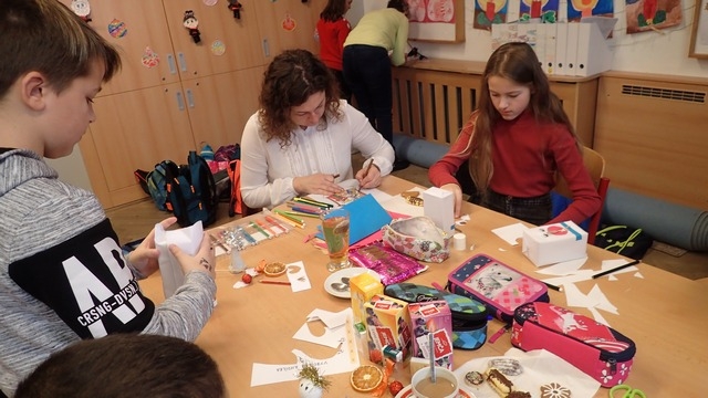 Během podzimních lekcí v keramickém kroužku vznikala pod rukami dětí 1. -7.tříd originální díla, jako například podivuhodné vážky s korálkovými křídly, hrníčky s otisky přírodnin, misky ve tvaru listů se skleněným dnem, nakousnutá jablíčka, vánoční svícny ve tvaru kapra a létající andělé.