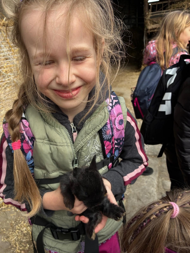 Děti z 1.A zajímá, jakou práci vykonávají jejich rodiče nebo prarodiče. Vydali jsme se proto na návštěvu statku dědečka jedné z našich žaček, pana Ulmanna, abychom se podívali, jak vypadá život a práce na statku.
