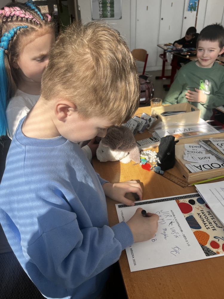Březen je měsíc knihy, a tak si děti z 1.C vyzkoušely, co všechno kniha zažije, než se od prvotního návrhu objeví na stolech čtenářů. Na vlastní kůži zažily roli autora, využily získané znalosti psaní a napsaly první popis svého oblíbeného zvířete, naučily se novou slovní zásobu anglických slovíček. Staly se ilustrátory a doplnily text kreslenými nebo malovanými zvířaty. Vžily se do role editora, četly, kontrolovaly text a společně doplňovaly informace. Zakusily pečlivou práci jednotlivce, náročnost hledání kompromisů i týmovou spolupráci.