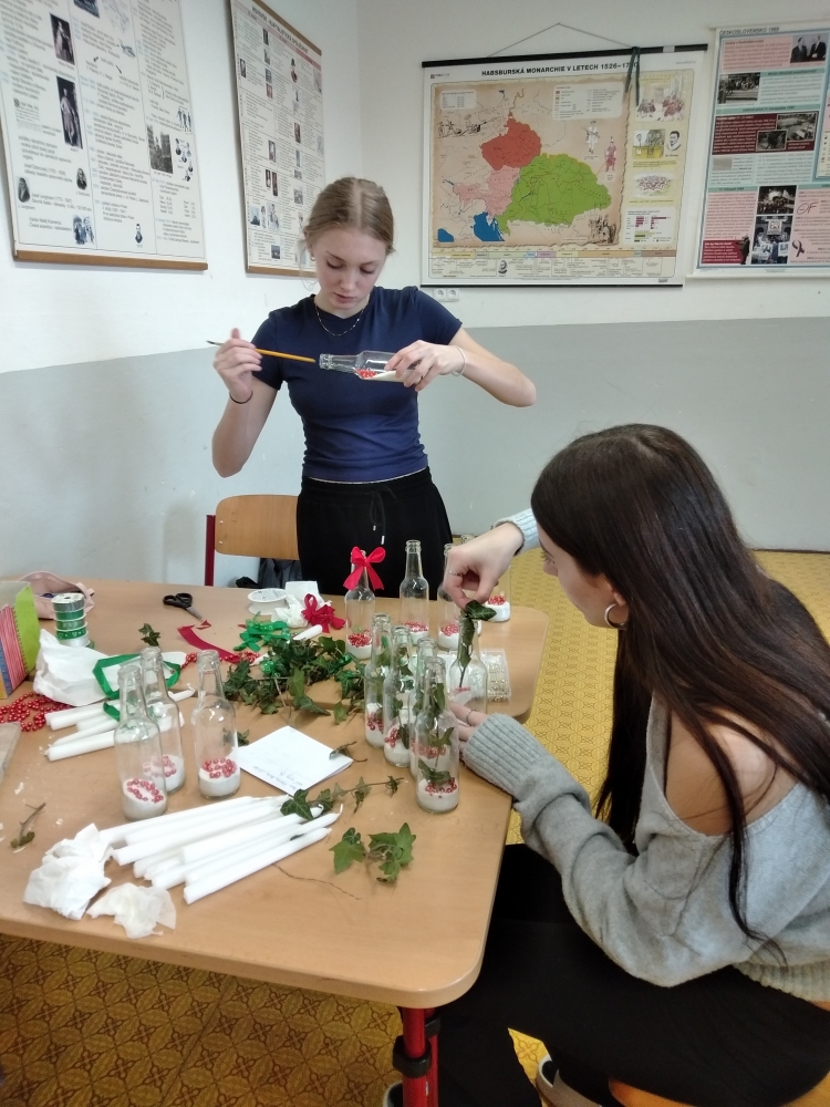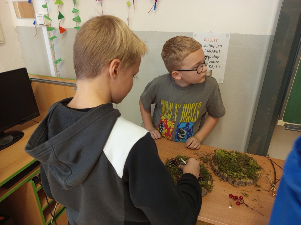Dne 11. listopadu 2025 proběhnly dvě třídnické hodiny, které byly věnovány výrobě adventních předmětů určených k prodeji na školním vánočním jarmarku. Účelem bylo zapojení všech tříd 2. stupně do přípravy vánočních výrobků, které pomohou ozvláštnit vánoční atmosféru školy a podpoří další akce školy.
