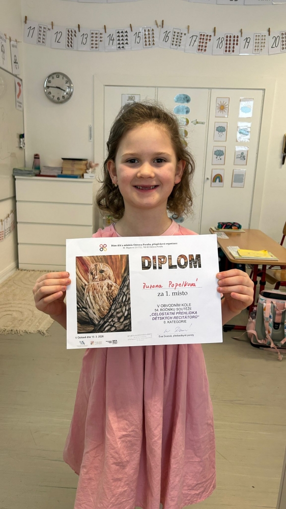 Do dalšího kola postoupily nejmladší žákyně. V okresním kole nás budou reprezentovat Zuzanka Popelková, která se umístila na 1. místě 0.kategorie, a Zorka Němcová, která se umístila na 2. místě 0. kategorie. Okresní kolo se uskuteční 27. března v sále DDM M. Majerové.