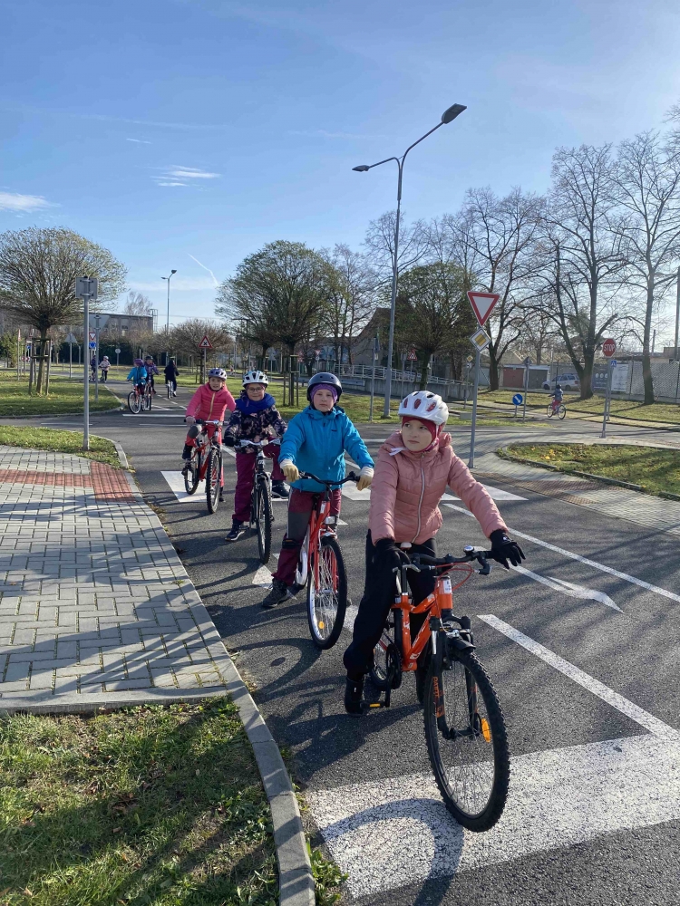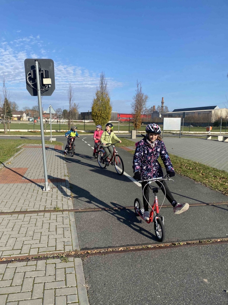 V minulém týdnu žáci obou čtvrtých tříd navštívili Dětské dopravní hřiště v Ostravě-Svinově na ulici Bílovecká. V učebně si nejdříve opakovali a procvičovali na konkrétních příkladech pravidla silničního provozu. Druhá část výuky se odehrávala na dopravním hřišti, kde si vše vyzkoušeli v praxi jako řidiči kola nebo koloběžky. Na jaře, kdy je plánována druhá návštěva, budou skládat zkoušky. Ti, kterým se podaří úspěšně projít úskalími testu i jízd, se stanou držiteli "řidičáku" na kolo.