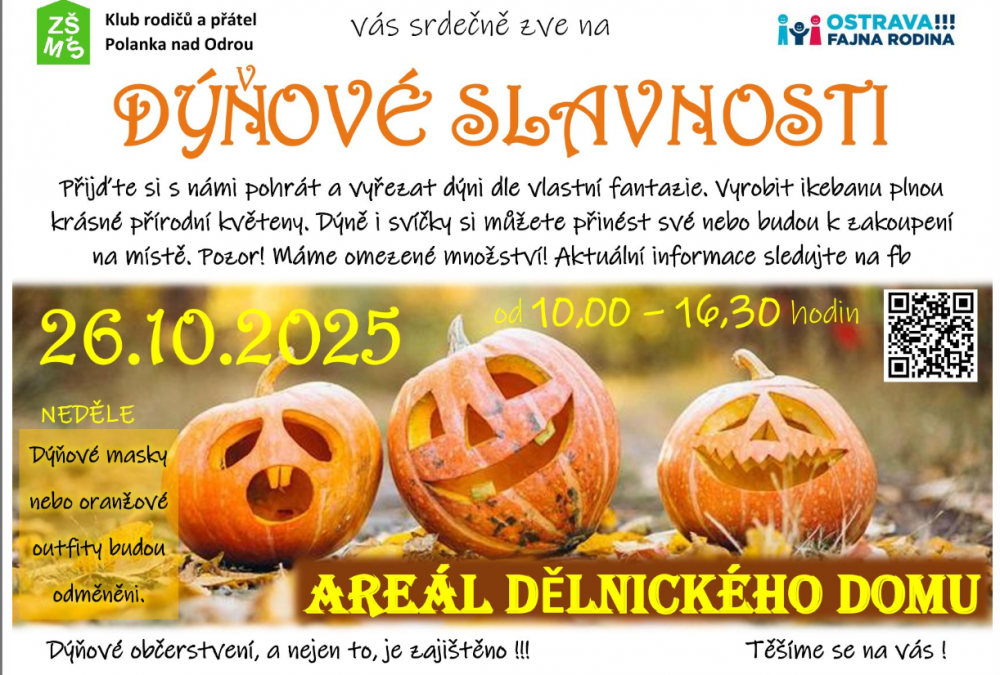 Přijďte si pohrát, vyřezat dýni, vyrobit ikebanu, navštívit stanoviště s tvořením. Občerstvení je zajištěno.