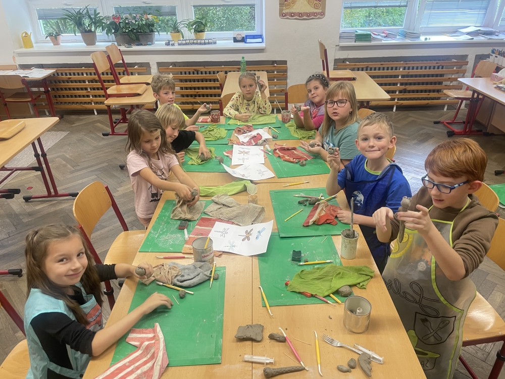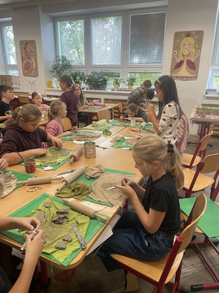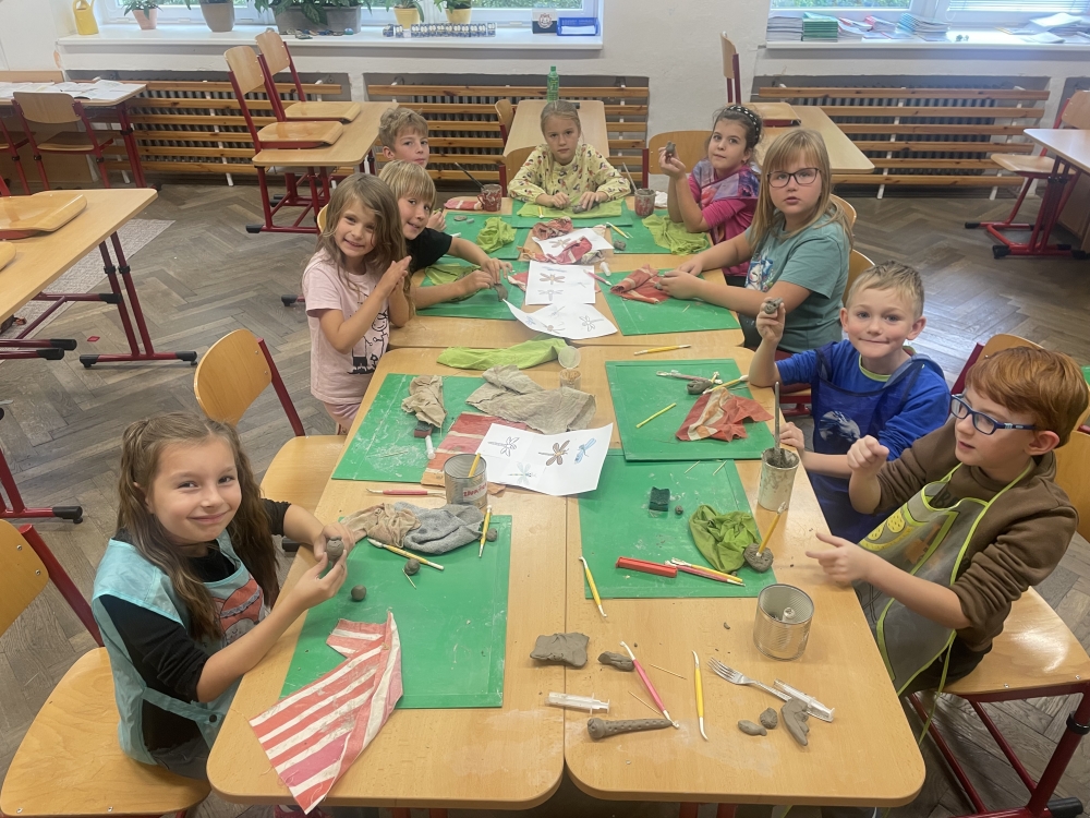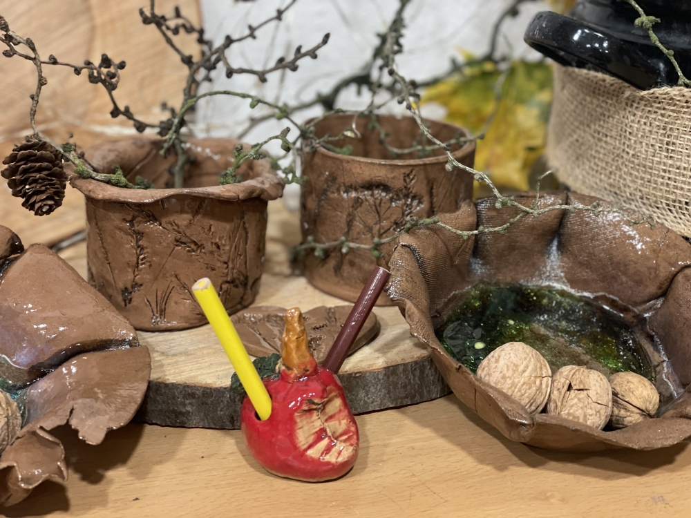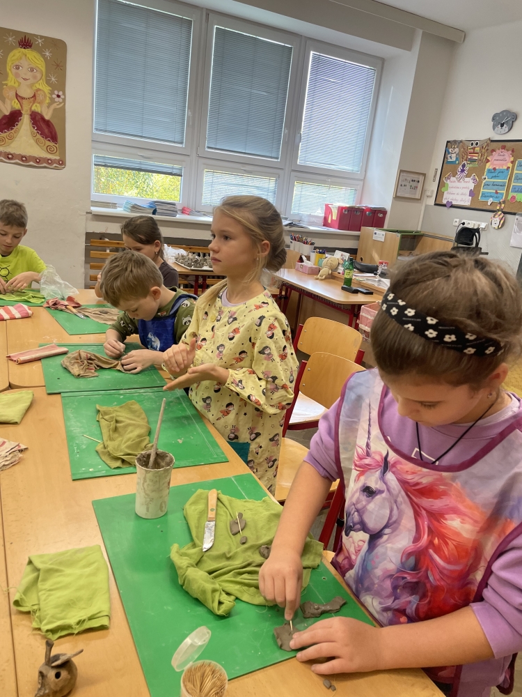 Během podzimních lekcí v keramickém kroužku vznikala pod rukami dětí 1. -7.tříd originální díla, jako například podivuhodné vážky s korálkovými křídly, hrníčky s otisky přírodnin, misky ve tvaru listů se skleněným dnem, nakousnutá jablíčka, vánoční svícny ve tvaru kapra a létající andělé. Nevěříte? Věřte.