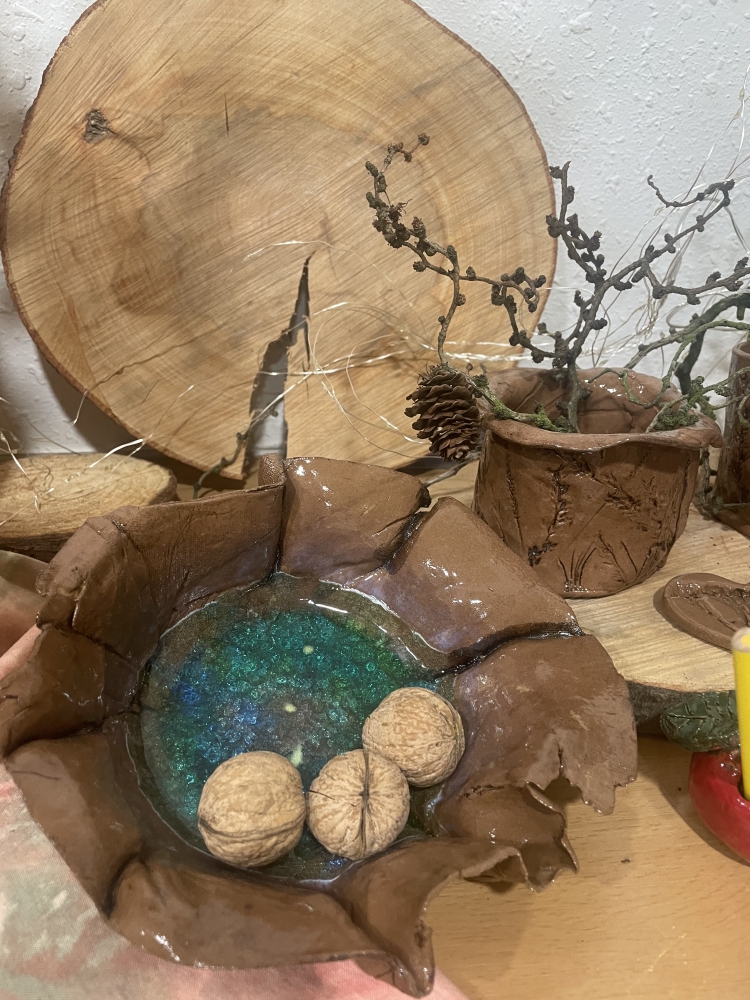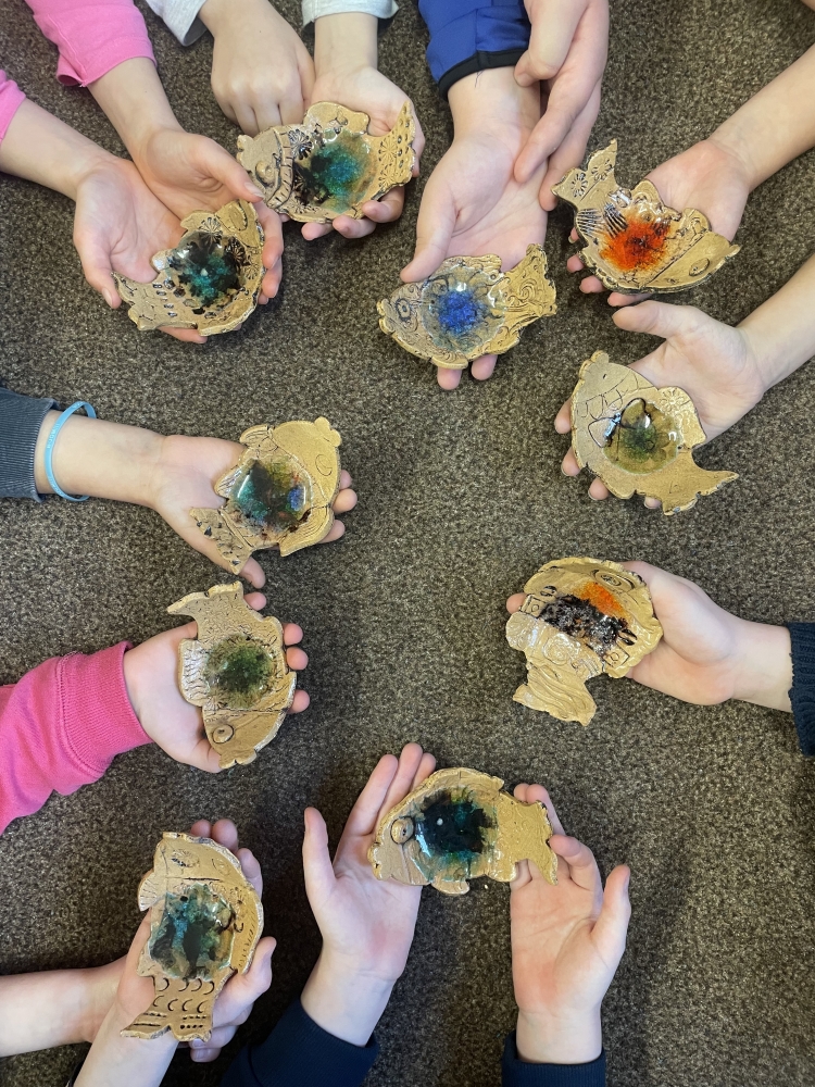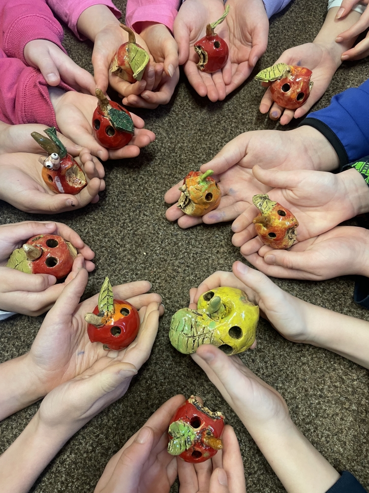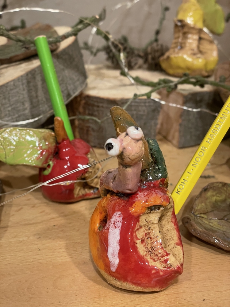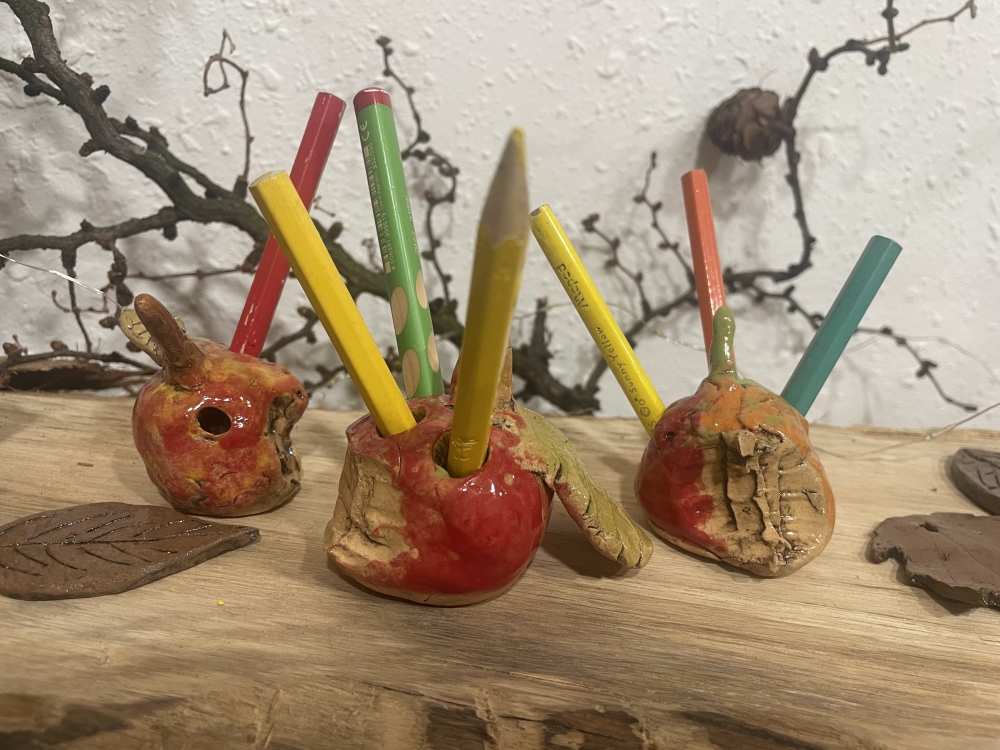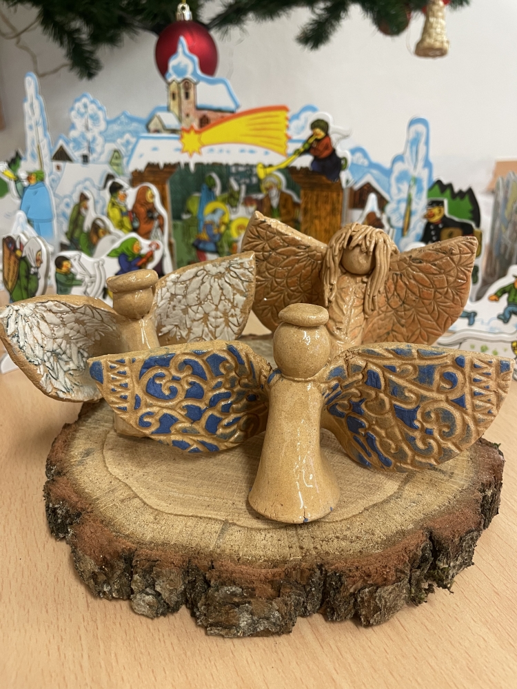 Během podzimních lekcí v keramickém kroužku vznikala pod rukami dětí 1. -7.tříd originální díla, jako například podivuhodné vážky s korálkovými křídly, hrníčky s otisky přírodnin, misky ve tvaru listů se skleněným dnem, nakousnutá jablíčka, vánoční svícny ve tvaru kapra a létající andělé. Nevěříte? Věřte.
