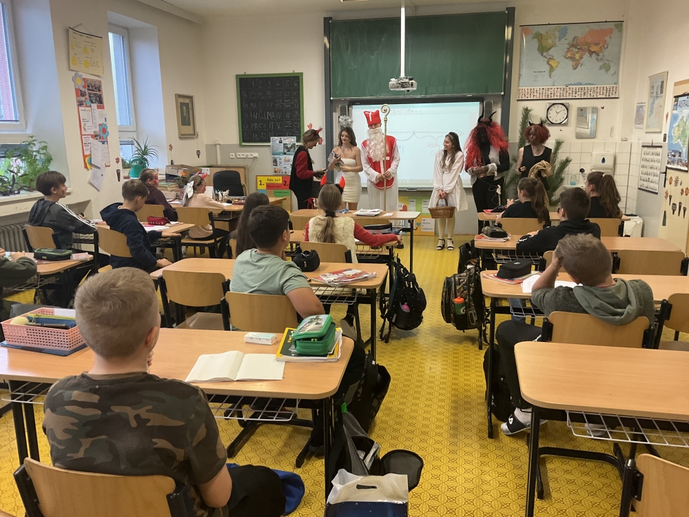 Tradiční mikulášská obchůzka potěšila velké i malé. Letos organizovali žáci 9.A a 9.B.