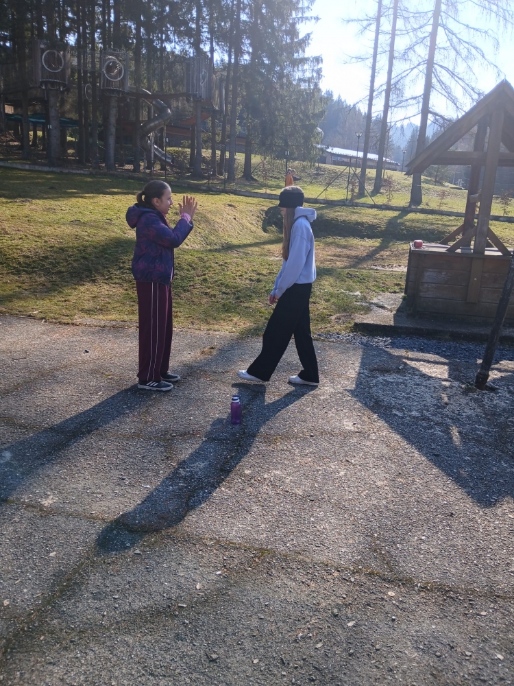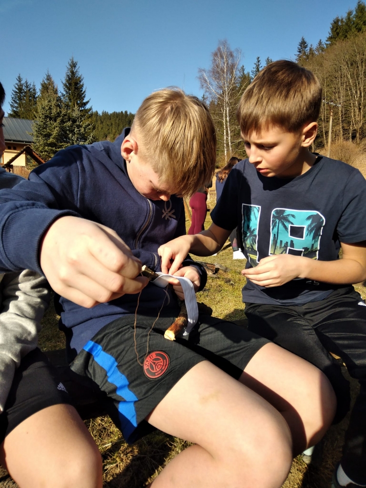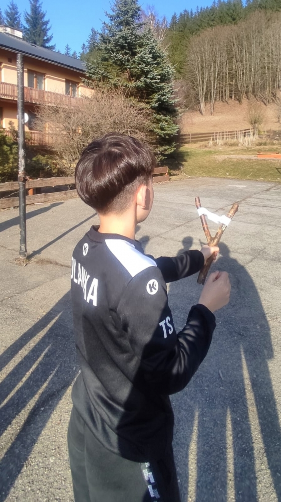 V sobotu a v neděli jsme museli všichni trochu zrelaxovat. Přišly na řadu vycházky v okolí, sportování v tělocvičně i venku a nezapomněli jsme ani na úkoly z únikovky. Točili jsme videa, nacvičovali tance, vyráběli praky. Střílení fazolí z praku nás dost pobavilo, protože fazole lítaly všude možně, jen ne tam, kde měly.
