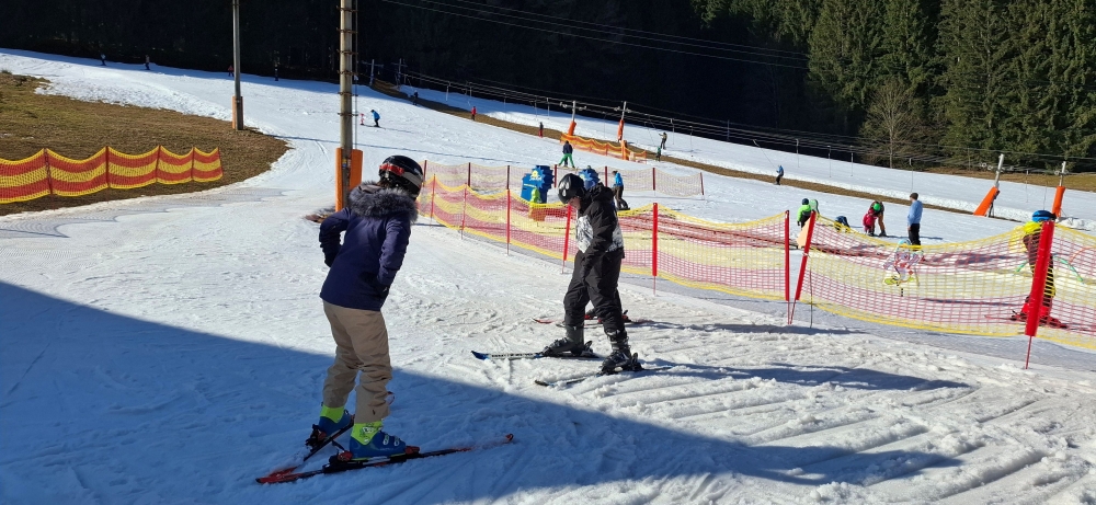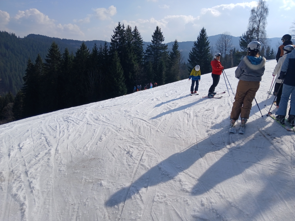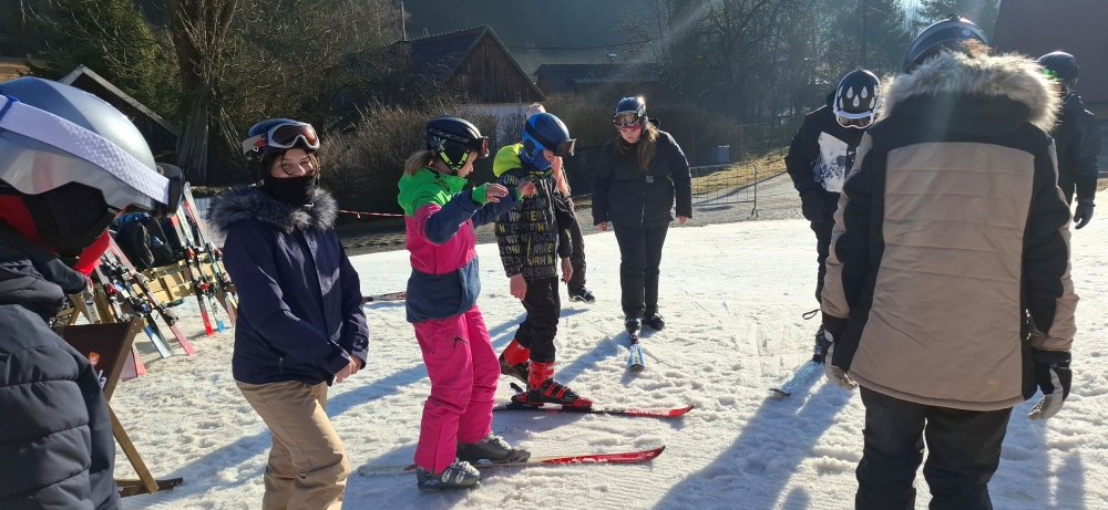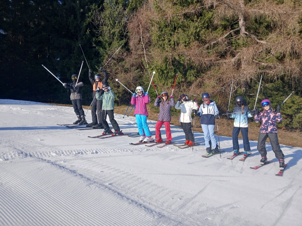 V pondělí ráno jsme se probudili do dalšího krásného slunečného dne a těšili se na náš první den lyžování. Vlastním skibusem jsme vyrazili do areálu, kde jsme se rozdělili do skupin podle pokročilosti. Dopoledne i odpoledne jsme strávili na svahu a užívali si první jízdy.