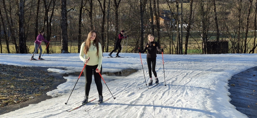 Přišlo pondělí a na řadě byly opět lyže, tentokrát to nebyly sjezdky, ale běžky. Biatlonový areál ve Velkých Karlovicích byl nečekaně pod sněhem a běžkování jsme si tak mohli v krásném jarním počasí užít se vším všudy. Srandy byl kopec, trocha pádů, nějaké modřiny, ale stálo to za to. V pondělí si zaběžkovaly holky, v úterý kluci a večer zase relax v bazénu.