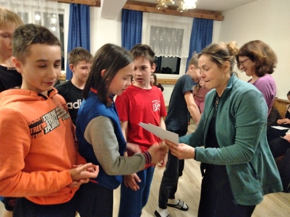 Na vycházkách se nám moc líbila galerie soch ve Velkých Karlovicích, na které jsme se naučili něco málo o tradičních řemeslech na Valašsku. Na Kardiostezce doktora Erlingera jsme si zase dali trochu do těla. V sobotu večer nás filmová projekce filmu Neporazitelní přenesla do světa parasportovců a připomněla nám sportovní výkony paraolympioniků na ZOH 2026. Téma olympiády nás čekalo ještě večer, kdy přišel na řadu zašifrovaný kvíz, který jsme nakonec všichni dali. Uff.
