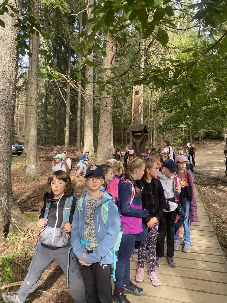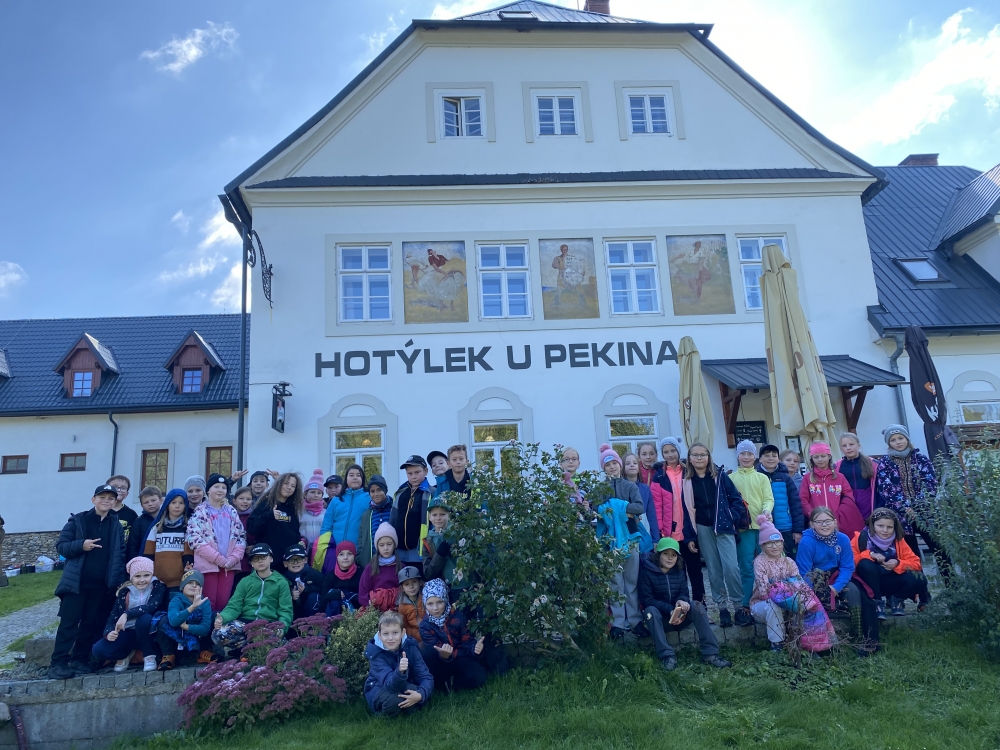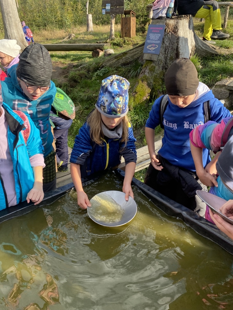 V neděli 28. 9. vyrazili čtvrťáci na ozdravný pobyt a za poznáváním přírodních krás Jeseníků. Navštívili národní přírodní rezervaci Rejvíz a prošli naučnou stezkou k Velkému mechovému jezírku, vyšlápli si do Zlatých Hor a také ke Zlatorudným mlýnům, kde je zkušený průvodce seznámil s historií dobývání zlata v okolí Zlatých Hor a mohli si vyzkoušet, jak se zlato rýžovalo.