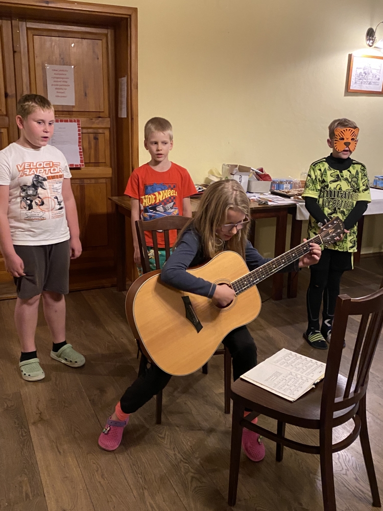 Ani nepřízeň počasí náladu na pobytu nepokazila. Děti využívaly bazén v Hotýlku u Pekina, kde byly ubytované, zpívaly s kytarou, hrály hry, soutěžily a řešily úkoly a kvízy. Zatančily si na maškarním plese a užily si přípravy a konání talentové soutěže Pekin má talent.