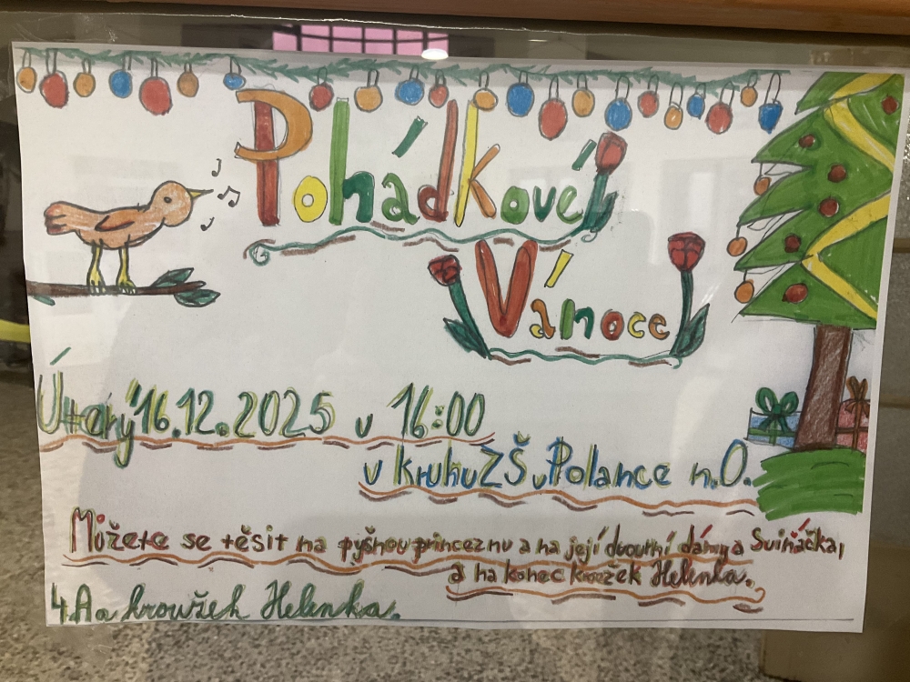 Třída 4.A a folklorní kroužek Helenka zvou 16. 12. do dvorany na Pohádkové Vánoce.