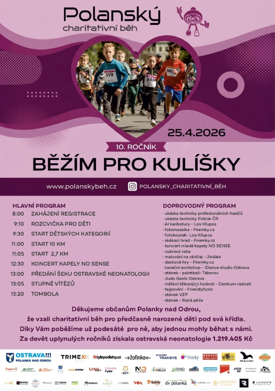 Výtěžek běhu je určen na podporu neonatologického oddělení Fakultní nemocnice Ostrava.