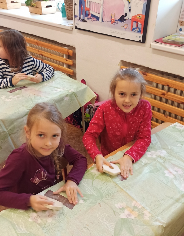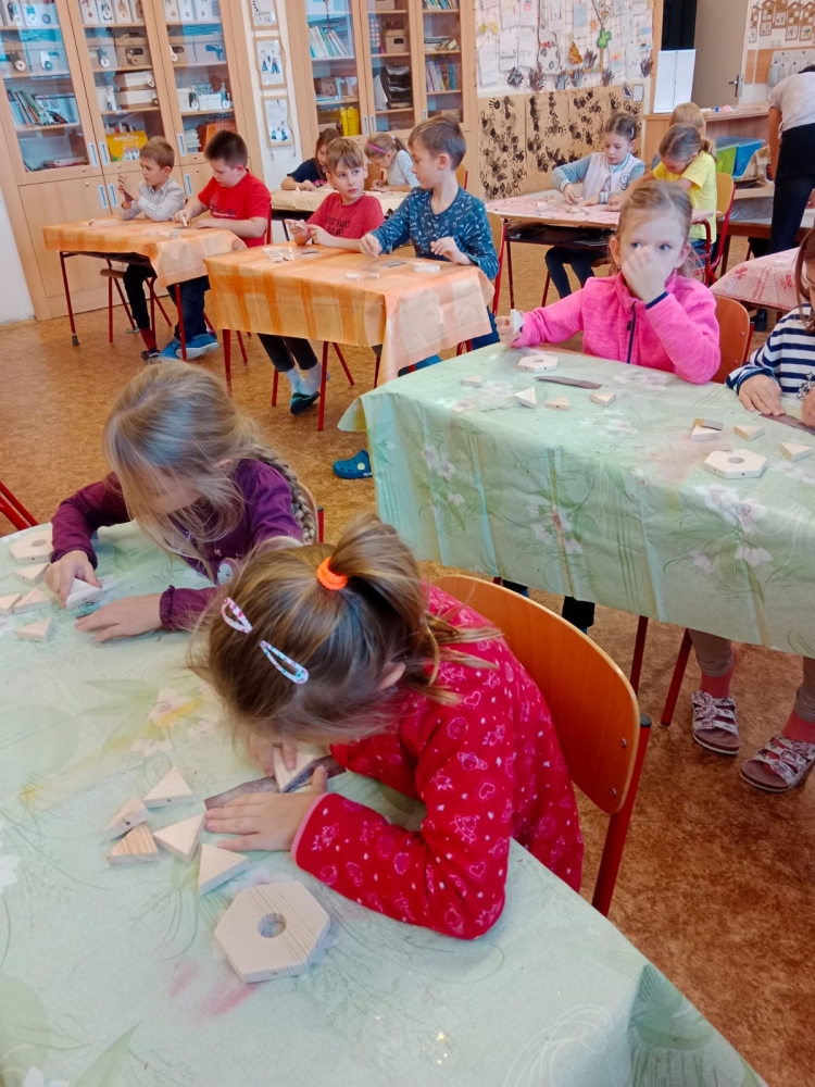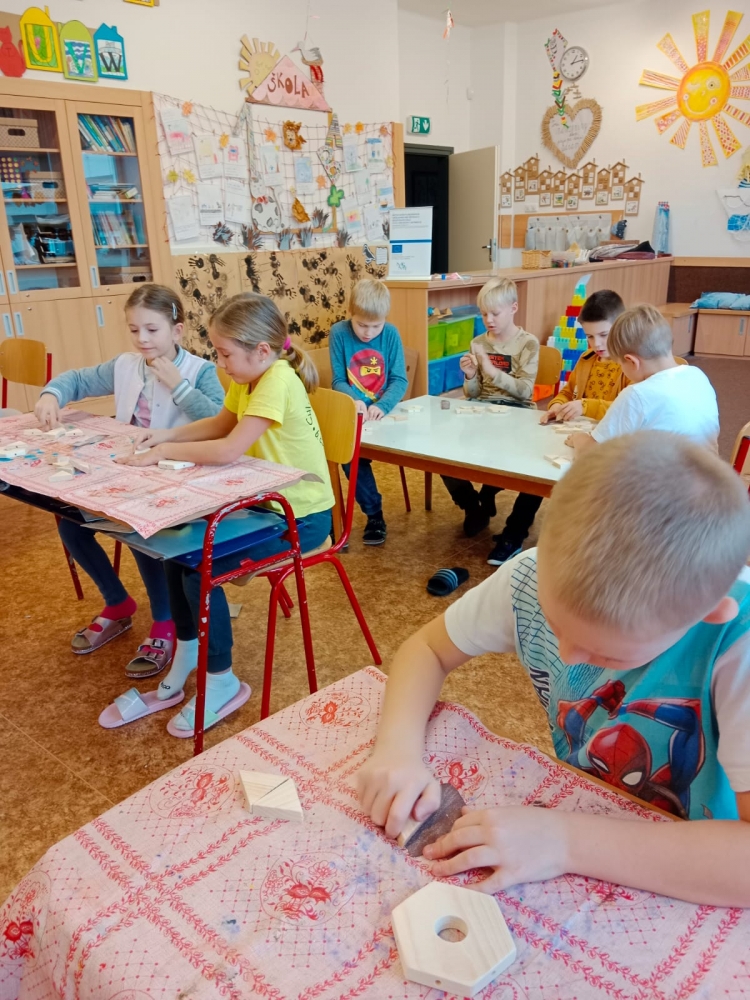 Děti pracovaly s dřevěnými polotovary, které smirkovaly a lepily. Domů si mohly odnést vlastnoručně vyrobenou dřevěnou vločku.