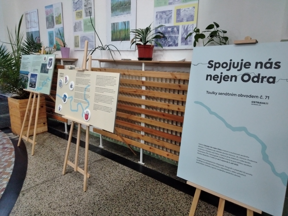 Výstava Spojuje nás nejen Odra byla nejdříve nainstalovaná v Praze v prostorách Senátu Parlamentu ČR a nyní díky iniciativě pana senátora Martina Bednáře si ji mohou prohlédnout naši žáci, ale i veřejnost. První dobrá příležitost bude v úterý 13. ledna během konzultačních schůzek. Jinak je možné vidět výstavu během měsíce ledna, a to během vyučování a po dohodě i v odpoledních hodinách. Doporučujeme předem se telefonicky ohlásit (596 931 563), abyste se dostali do jinak zamčené budovy.