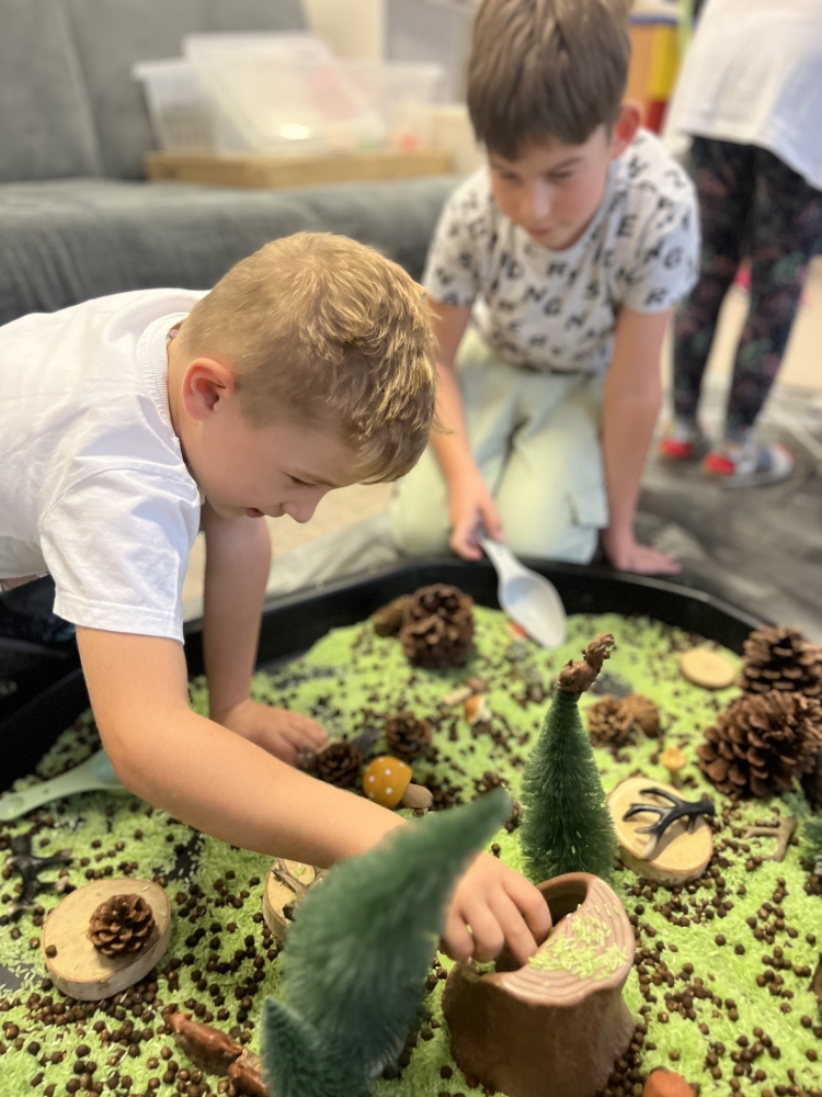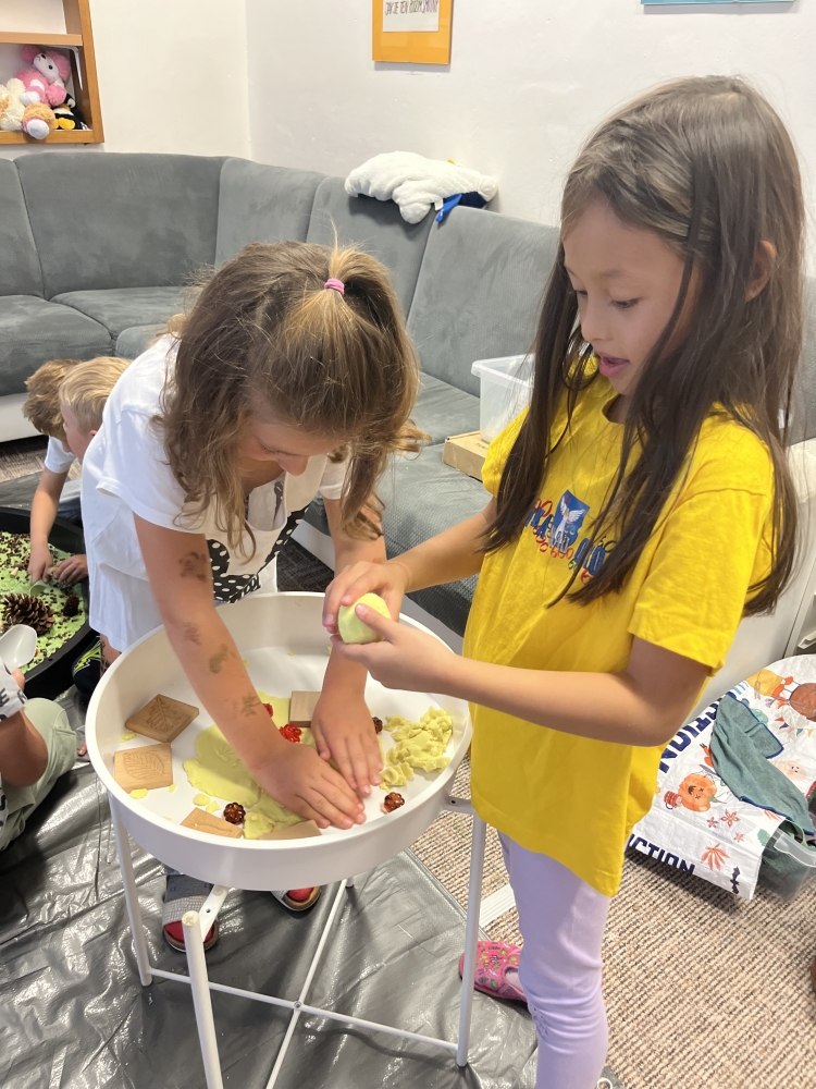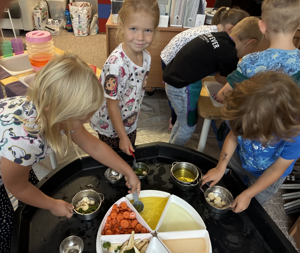 Děti se naprosto ponořily do přítomného okamžiku a tvořily podle vlastní fantazie. Někdy spolupracovaly, jindy si vybraly činnost jen samy pro sebe.