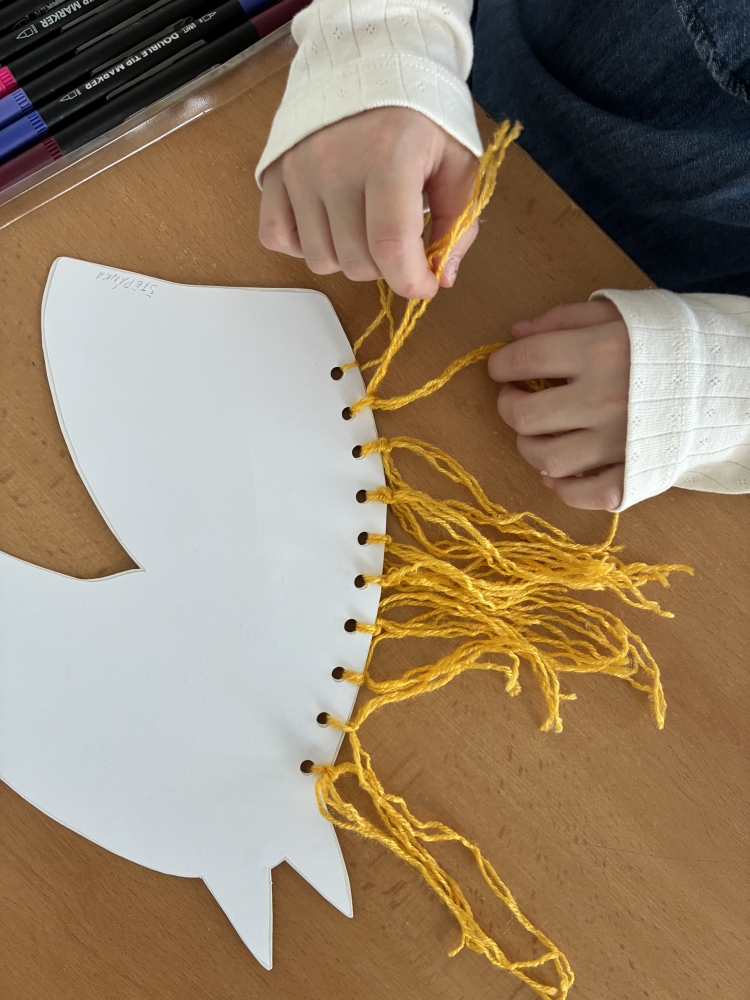 Prvňáčci si na svátek svatého Martina vyrobili bělouše se zlatou hřívou.