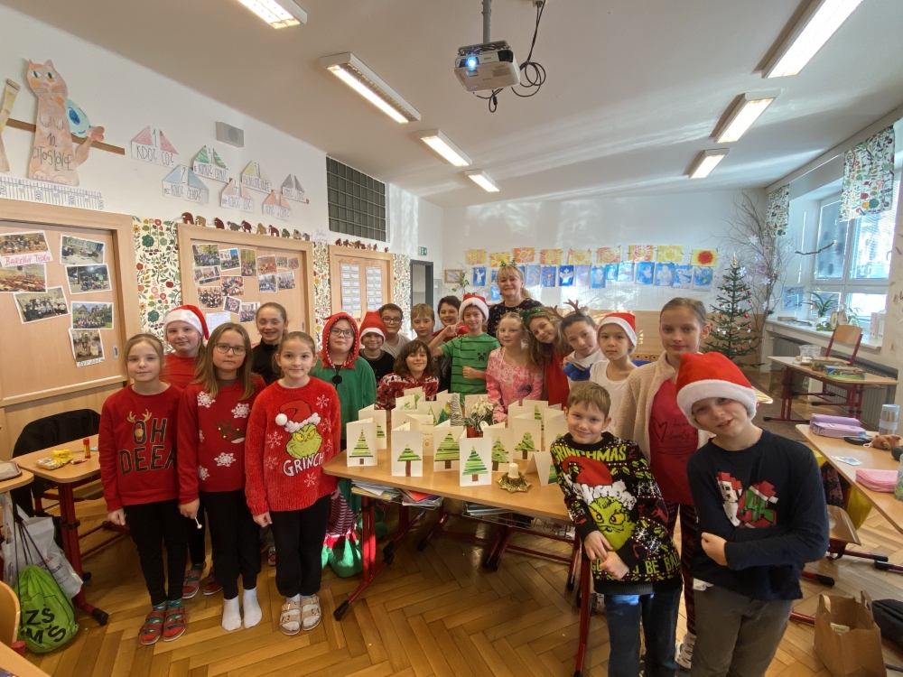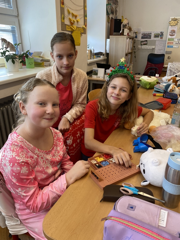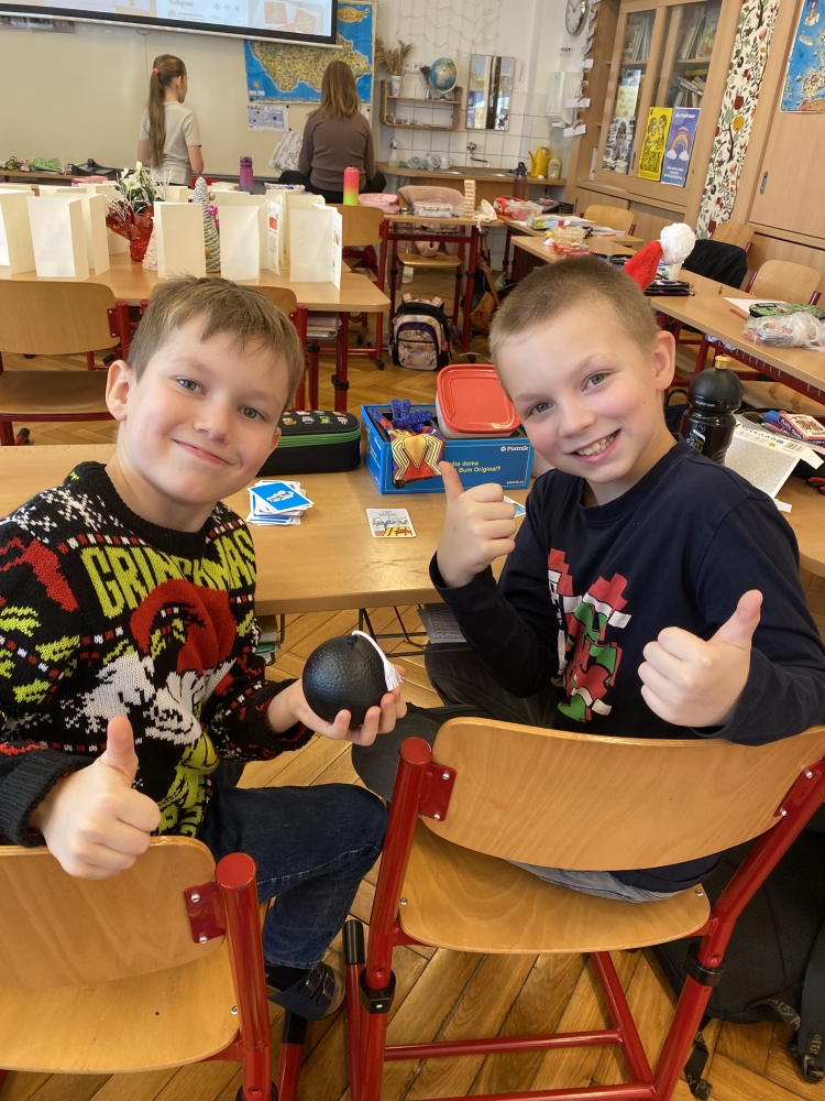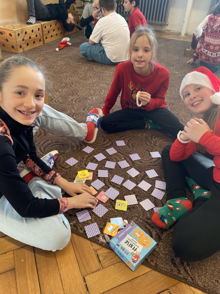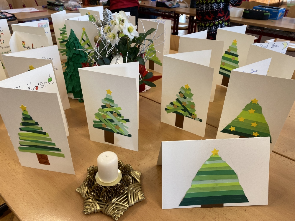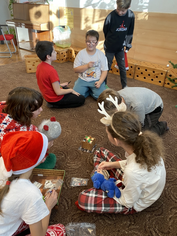 Děti 4. A si po náročném zkoušení textů a přípravě na vystoupení pro rodiče a spolužáky poslední školní den před Vánoci užily už jen dopoledne plné her a tvoření. Hned ráno si rozdaly poslední dárečky z adventního kalendáře a vytvořily si pěkná vánoční přáníčka pro příbuzné. Poté si zahrály oblíbené deskové a karetní hry přinesené ze svých pokojíčků. S přáním radostných Vánoc se rozloučily na prázdniny.