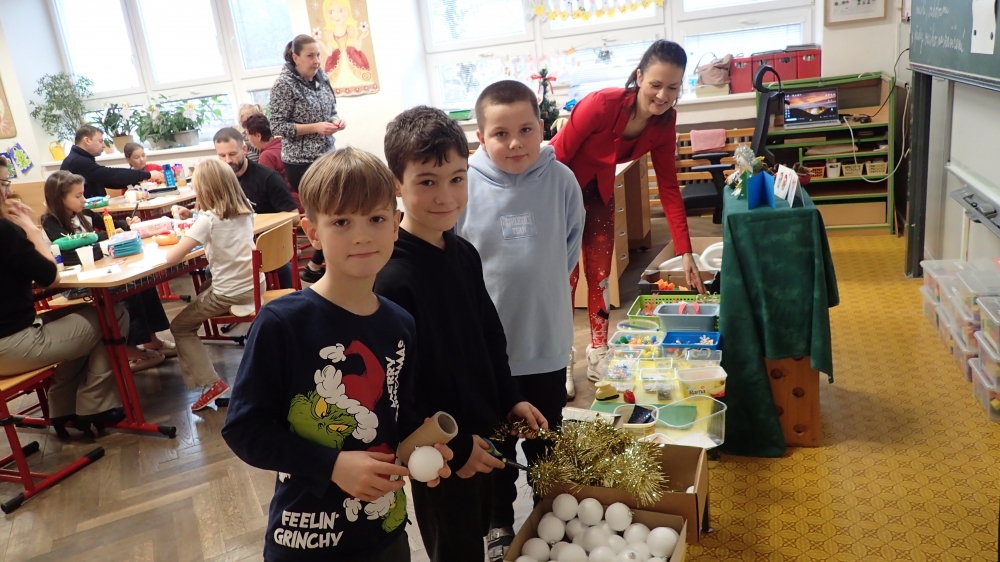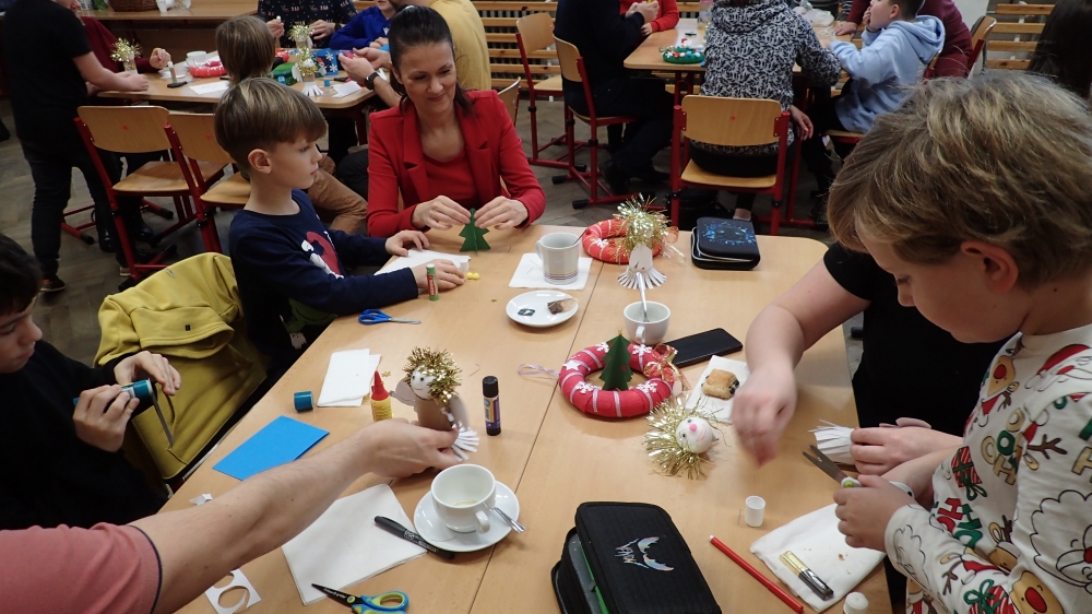 V prosinci proběhla ve 3. B vánoční dílna s hosty. Vyráběli jsme andílka, přáníčka, stromeček a věnec na dveře. Hostů přišlo hodně, atmosféra byla úžasná a výrobky povedené. Akce se velmi vydařila a líbila.
