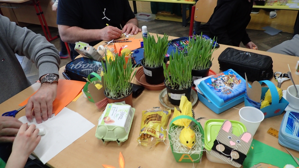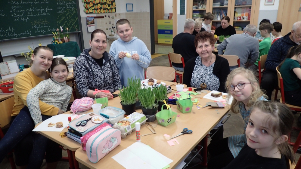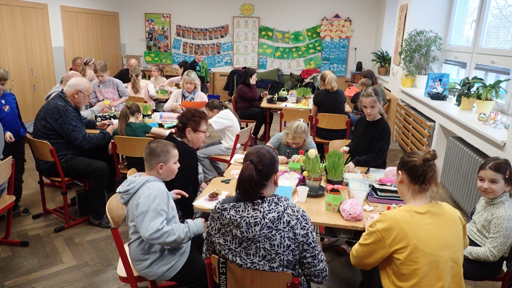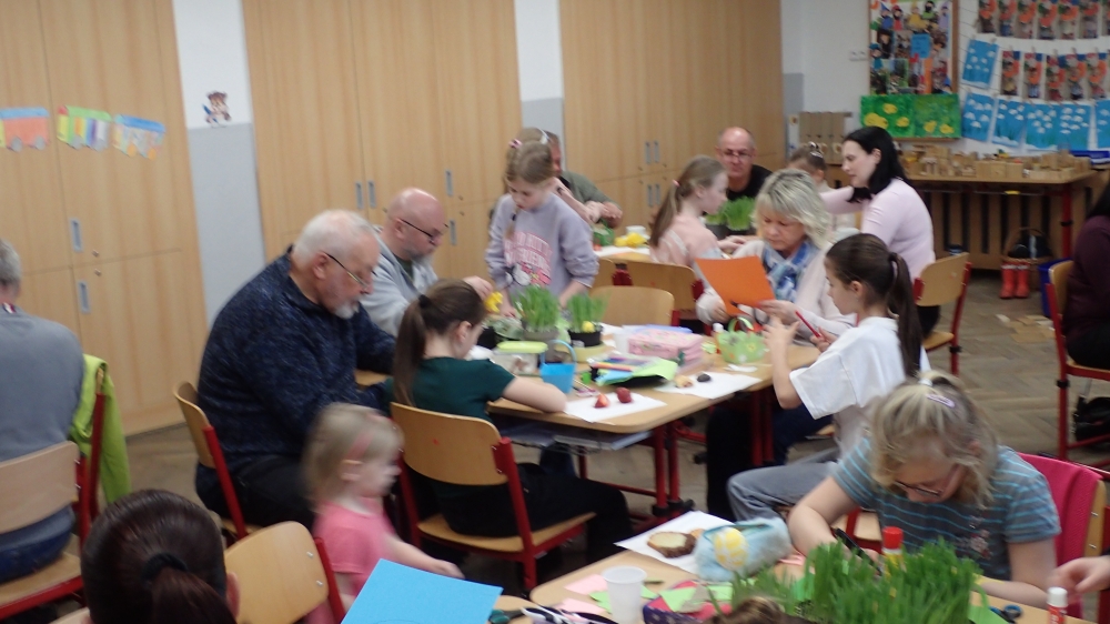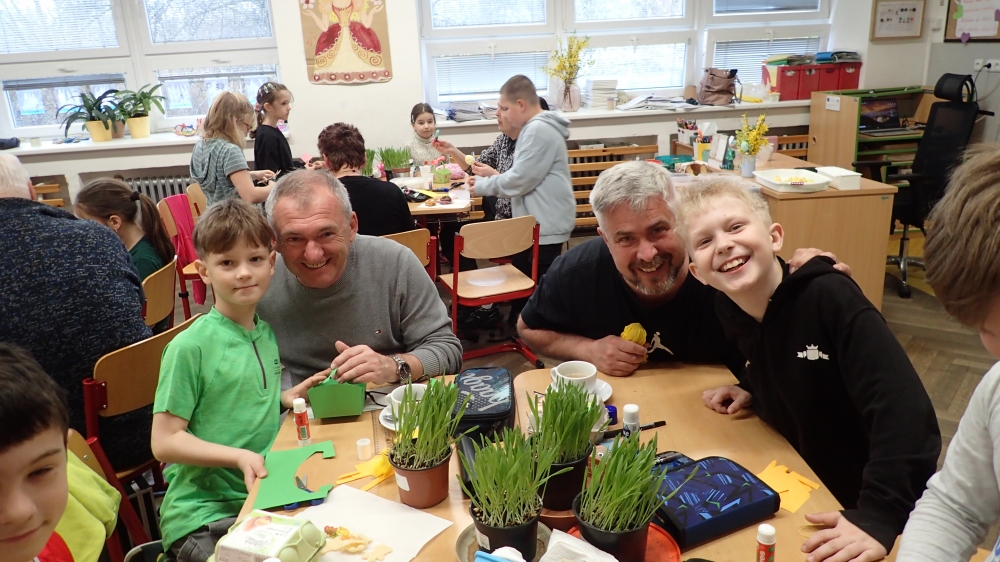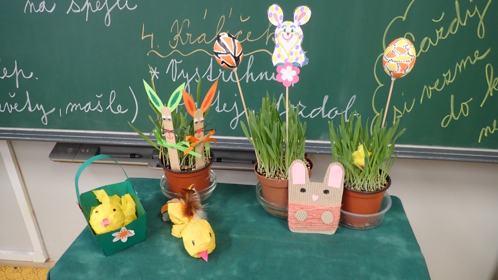 Na čtvrtek 26.3. jsme se všichni hodně těšili. Ve 3. B totiž probíhala Velikonoční dílna s hosty. Vyráběli jsme košíček, kuřátka, zajíčky, zápichy, malovali vajíčka. Ozdoby si děti umístily do předem nasetého obilíčka, které nám během týdne krásně vzrostlo. Hostů přišlo tentokrát opravdu hodně a téměř všechny děti někoho ve třídě přivítaly. Akce se všem líbila a děti si odnesly domů krásné velikonoční dekorace.