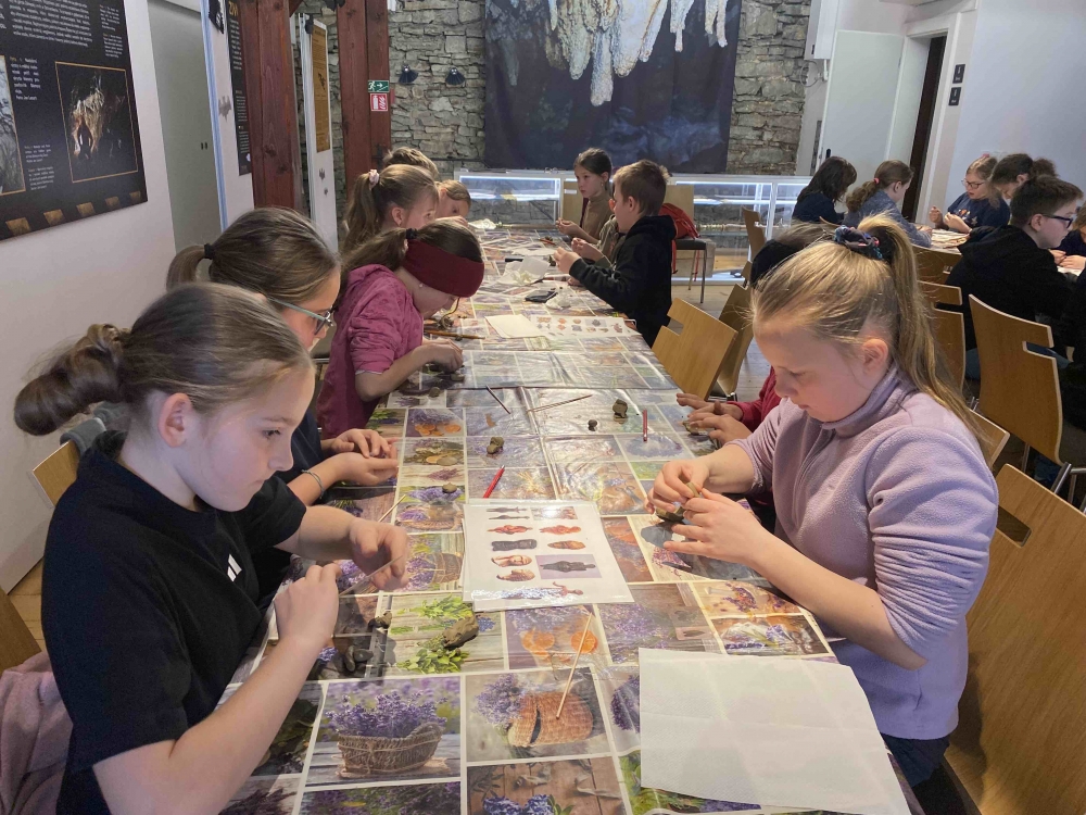 Prozkoumali jeskyni Šipka, kde se dověděli hodně zajímavého z doby, kdy jeskyni obývali pravěcí lidé. Získali také informace o výzkumech, které se zde prováděly a mohli si osahat repliky nálezů kosterních pozůstatků a nástrojů. Na závěr si každý zkusil vykřesat jiskru jako to dělávali pravěcí lovci.